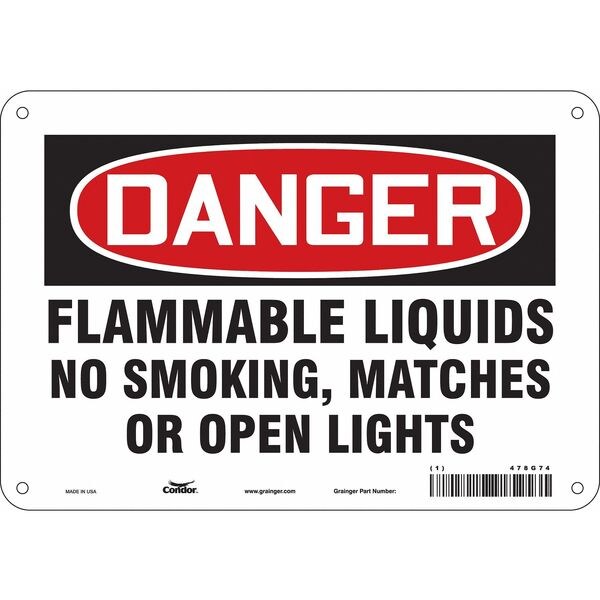 Safety Sign, Vertical Rectangle, Number of Printed Sides 1, English, Sign Format Traditional OSHA, Sign Legend Flammable Liquid No Smoking, Matches Or Open Lights, Sign Legend Background Color White, Sign Legend Style Text