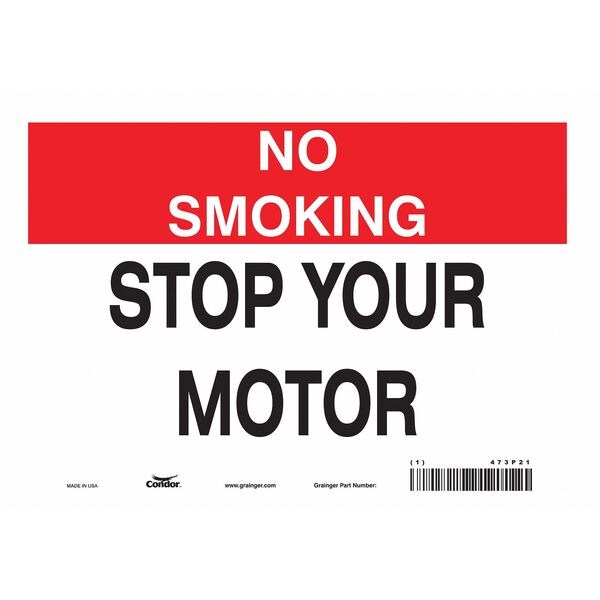 Safety Sign, Vertical Rectangle, Number of Printed Sides 1, English, Sign Format Other Format, Sign Legend No Smoking Stop Your Motor, Sign Legend Background Color Red, White, Sign Legend Style Text