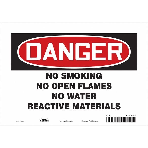 Safety Sign, Vertical Rectangle, Number of Printed Sides 1, English, Sign Format Traditional OSHA, Sign Legend No Smoking No Open Flames No Water Reactive Materials, Sign Legend Background Color White, Sign Legend Style Text