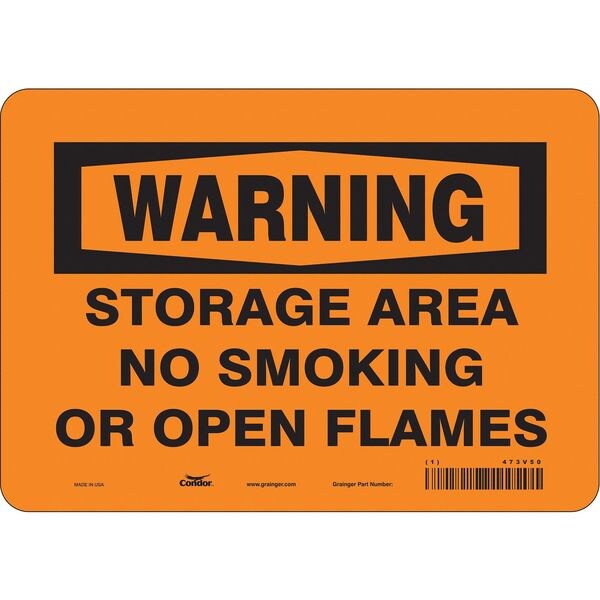 Safety Sign, Vertical Rectangle, Number of Printed Sides 1, English, Sign Format Traditional OSHA, Sign Legend Storage Area No Smoking Or Open Flames, Sign Legend Background Color Orange, Sign Legend Style Text