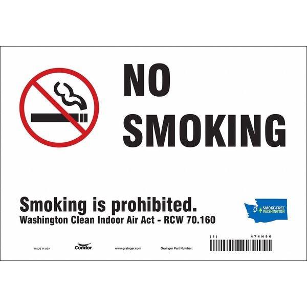 Safety Sign, Vertical Rectangle, Number of Printed Sides 1, English, Sign Format Other Format, Sign Legend No Smoking Smoking Is Prohibited. Washington Clean Air Act - Rcw 70.160, Sign Legend Background Color White, Sign Legend Style Symbol and Text