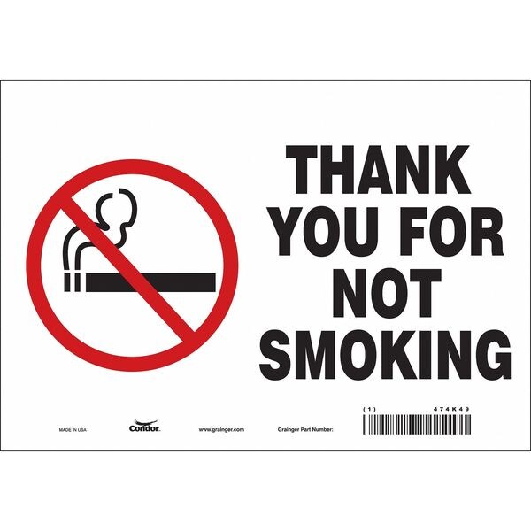 Safety Sign, Vertical Rectangle, Number of Printed Sides 1, English, Sign Format Other Format, Sign Legend Thank You For Not Smoking, Sign Legend Background Color White, Sign Legend Style Symbol and Text