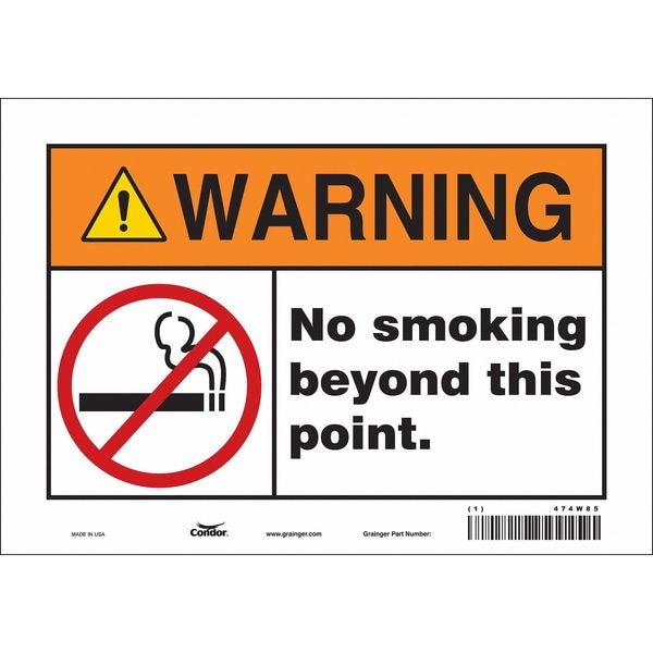 Safety Sign, Vertical Rectangle, Number of Printed Sides 1, English, Sign Format ANSI/OSHA Format, Sign Legend No Smoking Beyond This Point., Sign Legend Background Color White, Sign Legend Style Symbol and Text
