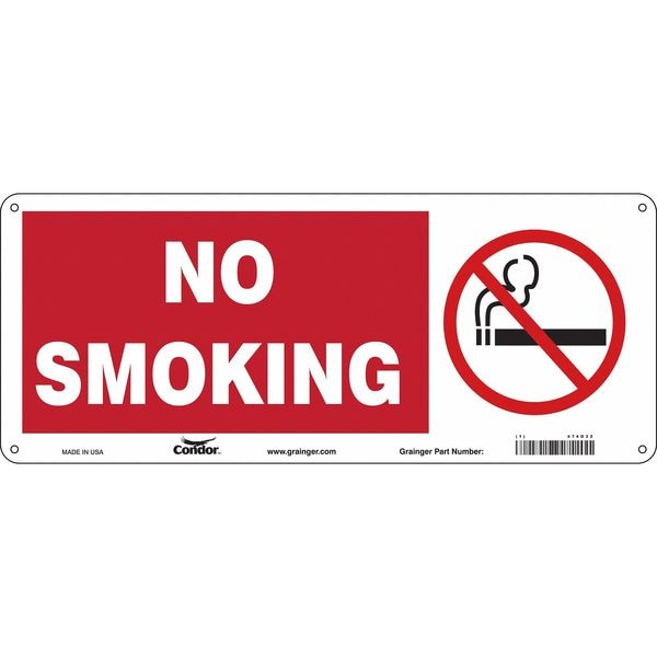 Safety Sign, Vertical Rectangle, Number of Printed Sides 1, English, Sign Format Other Format, Sign Legend No Smoking, Sign Legend Background Color Red, White, Sign Legend Style Symbol and Text