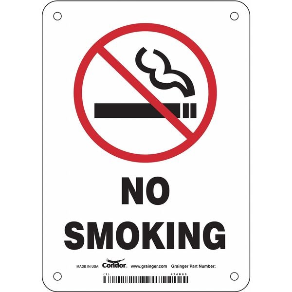 Safety Sign, Vertical Rectangle, Number of Printed Sides 1, English, Sign Format Other Format, Sign Legend No Smoking, Sign Legend Background Color White, Sign Legend Style Symbol and Text