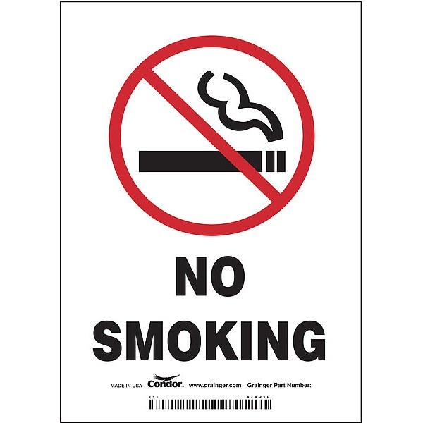 Safety Sign, Vertical Rectangle, Number of Printed Sides 1, English, Sign Format Other Format, Sign Legend No Smoking, Sign Legend Background Color White, Sign Legend Style Symbol and Text