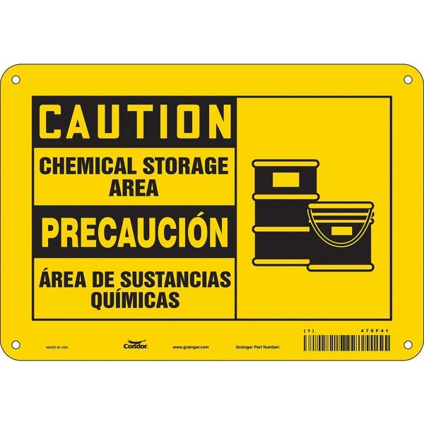 Safety Sign, Vertical Rectangle, Number of Printed Sides 1, English, Spanish, Sign Format Traditional OSHA, Sign Legend Chemical Storage Area/Area De Sustancias Quimicas, Sign Legend Background Color Yellow, Sign Legend Style Symbol and Text