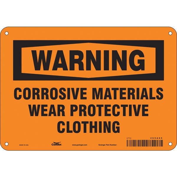 Safety Sign, Vertical Rectangle, Number of Printed Sides 1, English, Sign Format Traditional OSHA, Sign Legend Corrosive Materials Wear Protective Clothing, Sign Legend Background Color Orange, Sign Legend Style Text