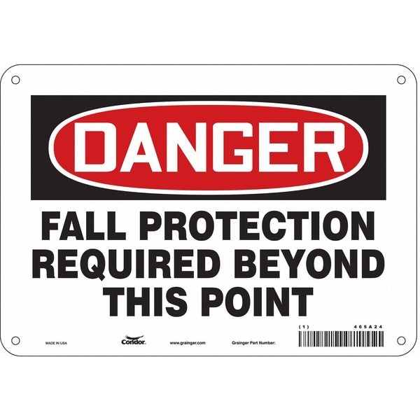 Safety Sign, Vertical Rectangle, Number of Printed Sides 1, English, Sign Format Traditional OSHA, Sign Legend Fall Protection Required Beyond This Point, Sign Legend Background Color White, Sign Legend Style Text