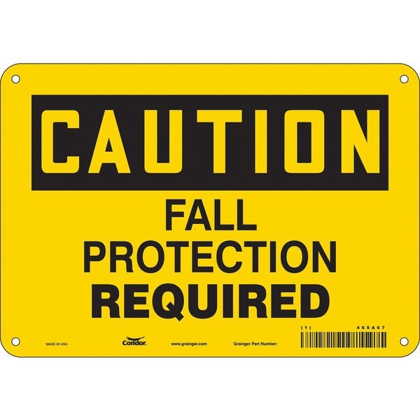 Safety Sign, Vertical Rectangle, Number of Printed Sides 1, English, Sign Format Traditional OSHA, Sign Legend Fall Protection Required, Sign Legend Background Color Yellow, Sign Legend Style Text