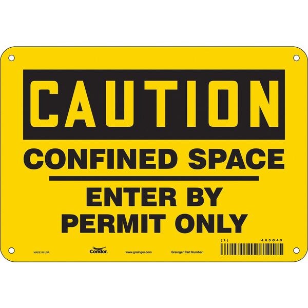 Safety Sign, Vertical Rectangle, Number of Printed Sides 1, English, Sign Format Traditional OSHA, Sign Legend Confined Space Enter By Permit Only, Sign Legend Background Color Yellow, Sign Legend Style Text