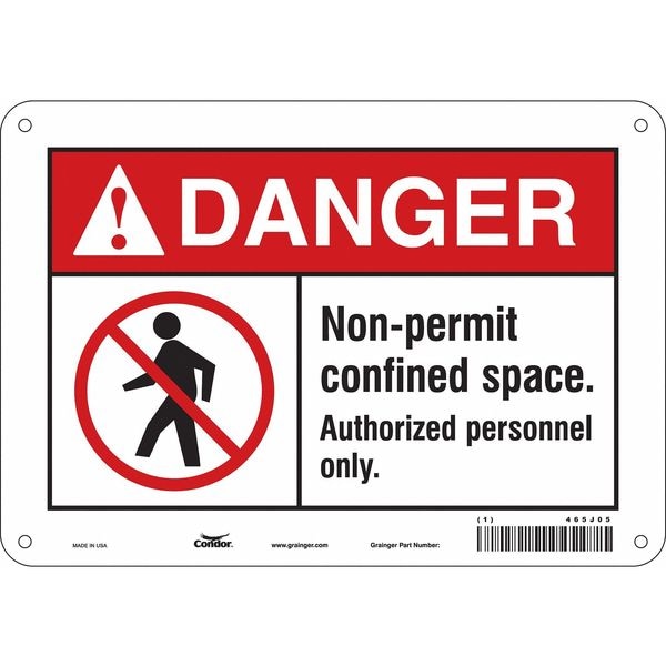 Safety Sign, Vertical Rectangle, Number of Printed Sides 1, English, Sign Format ANSI/OSHA Format, Sign Legend Non-Permit Confined Space. Authorized Personnel Only., Sign Legend Background Color White, Sign Legend Style Symbol and Text