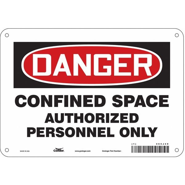 Safety Sign, Vertical Rectangle, Number of Printed Sides 1, English, Sign Format Traditional OSHA, Sign Legend Confined Space Authorized Personnel Only, Sign Legend Background Color White, Sign Legend Style Text