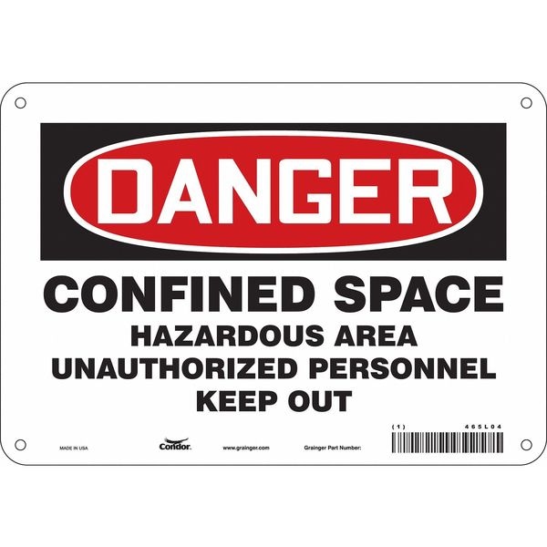 Safety Sign, Vertical Rectangle, Number of Printed Sides 1, English, Sign Format Traditional OSHA, Sign Legend Confined Space Hazardous Area Unauthorized Peronnel Keep Out, Sign Legend Background Color White, Sign Legend Style Text