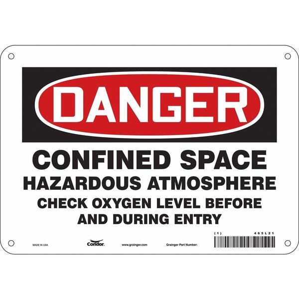 Safety Sign, Vertical Rectangle, Number of Printed Sides 1, English, Sign Format Traditional OSHA, Sign Legend Confined Space Hazardous Atmosphere Check Oxygen Level Before And During Entry, Sign Legend Background Color White, Sign Legend Style Text