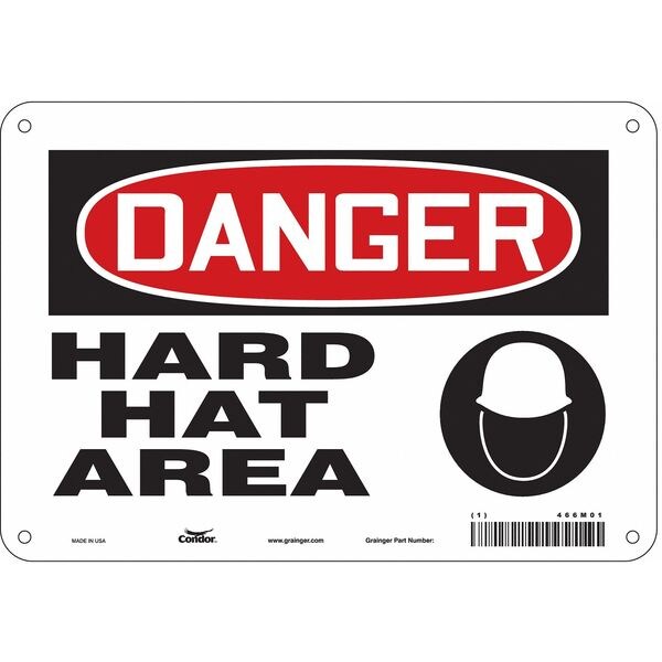 Safety Sign, Vertical Rectangle, Number of Printed Sides 1, English, Sign Format Traditional OSHA, Sign Legend Hard Hat Area, Sign Legend Background Color White, Sign Legend Style Symbol and Text