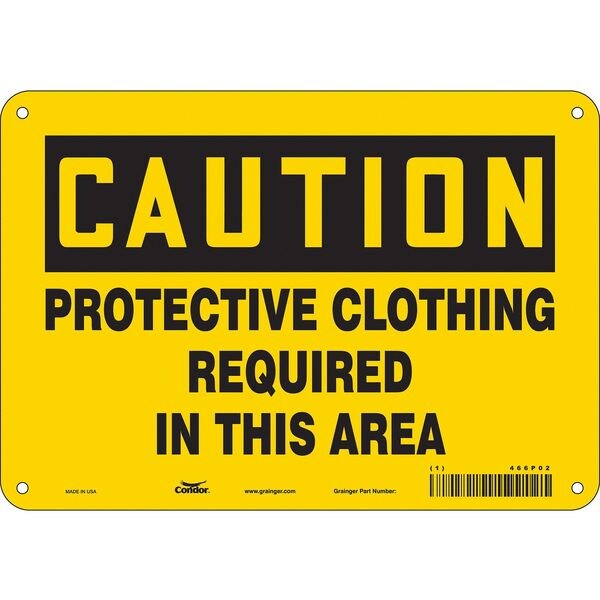 Safety Sign, Vertical Rectangle, Number of Printed Sides 1, English, Sign Format Traditional OSHA, Sign Legend Protective Clothing Required In This Area, Sign Legend Background Color Yellow, Sign Legend Style Text