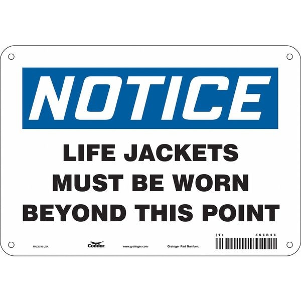 Safety Sign, Vertical Rectangle, Number of Printed Sides 1, English, Sign Format Traditional OSHA, Sign Legend Life Jackets Must Be Worn Beyond This Point, Sign Legend Background Color White, Sign Legend Style Text