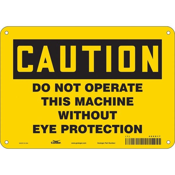 Safety Sign, Vertical Rectangle, Number of Printed Sides 1, English, Sign Format Traditional OSHA, Sign Legend Do Not Operate This Machine Without Eye Protection, Sign Legend Background Color Yellow, Sign Legend Style Text