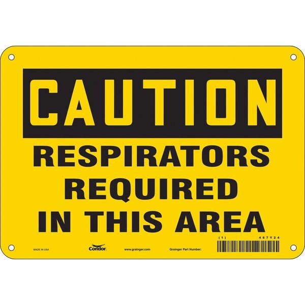 Safety Sign, Vertical Rectangle, Number of Printed Sides 1, English, Sign Format Traditional OSHA, Sign Legend Respirators Required In This Area, Sign Legend Background Color Yellow, Sign Legend Style Text