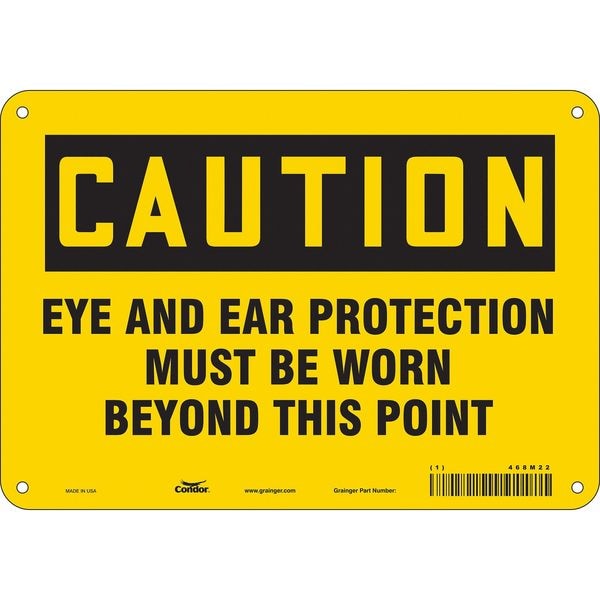 Safety Sign, Vertical Rectangle, Number of Printed Sides 1, English, Sign Format Traditional OSHA, Sign Legend Ear And Eye Protection Must Be Worn Beyond This Point, Sign Legend Background Color Yellow, Sign Legend Style Text