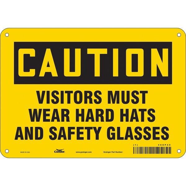 Safety Sign, Vertical Rectangle, Number of Printed Sides 1, English, Sign Format Traditional OSHA, Sign Legend Visitors Must Wear Hard Hats And Safety Glasses, Sign Legend Background Color Yellow, Sign Legend Style Text