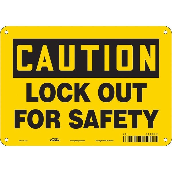 Safety Sign, Vertical Rectangle, Number of Printed Sides 1, English, Sign Format Traditional OSHA, Sign Legend Lock Out For Safety, Sign Legend Background Color Yellow, Sign Legend Style Text