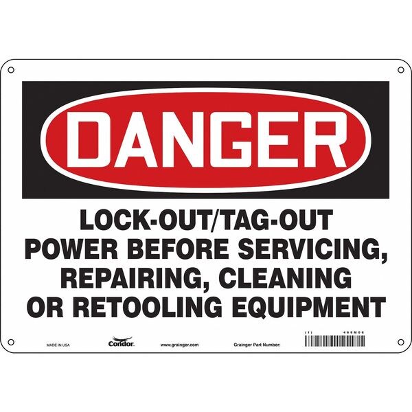 Safety Sign, Vertical Rectangle, Number of Printed Sides 1, English, Sign Format Traditional OSHA, Sign Legend Lock-Out/Tag-Out Power Before Servicing, Repairing, Cleaning Or Retooling Equipment, Sign Legend Background Color White, Sign Legend Style Text