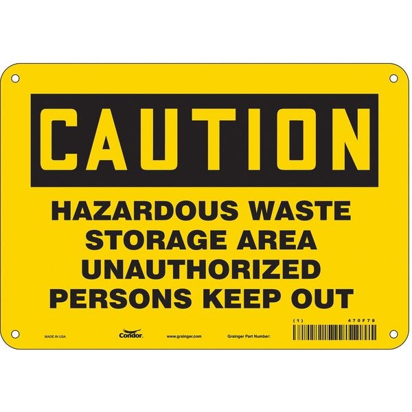 Safety Sign, Vertical Rectangle, Number of Printed Sides 1, English, Sign Format Traditional OSHA, Sign Legend Hazardous Waste Storage Area Unauthorized Persons Keep Out, Sign Legend Background Color Yellow, Sign Legend Style Text