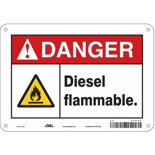 Safety Sign, Vertical Rectangle, Number of Printed Sides 1, English, Sign Format ANSI/OSHA Format, Sign Legend Diesel Flammable., Sign Legend Background Color White, Sign Legend Style Symbol and Text