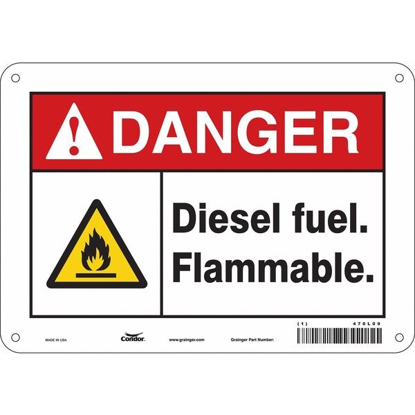 Safety Sign, Vertical Rectangle, Number of Printed Sides 1, English, Sign Format ANSI/OSHA Format, Sign Legend Diesel Fuel. Flammable., Sign Legend Background Color White, Sign Legend Style Symbol and Text