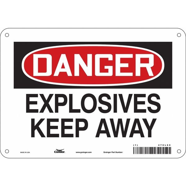 Safety Sign, Vertical Rectangle, Number of Printed Sides 1, English, Sign Format Traditional OSHA, Sign Legend Explosives Keep Away, Sign Legend Background Color White, Sign Legend Style Text