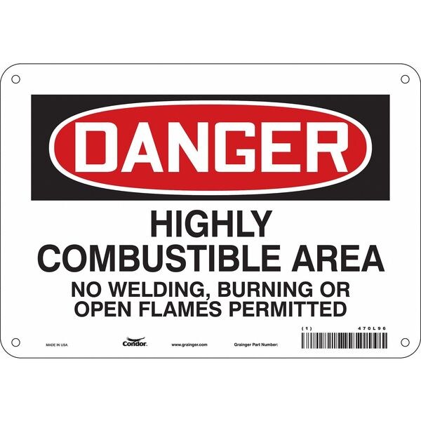 Safety Sign, Vertical Rectangle, Number of Printed Sides 1, English, Sign Format Traditional OSHA, Sign Legend Highly Combustible Area No Welding, Burning Or Open Flames Permitted, Sign Legend Background Color White, Sign Legend Style Text