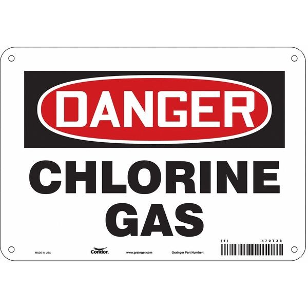 Safety Sign, Vertical Rectangle, Number of Printed Sides 1, English, Sign Format Traditional OSHA, Sign Legend Chlorine Gas, Sign Legend Background Color White, Sign Legend Style Text