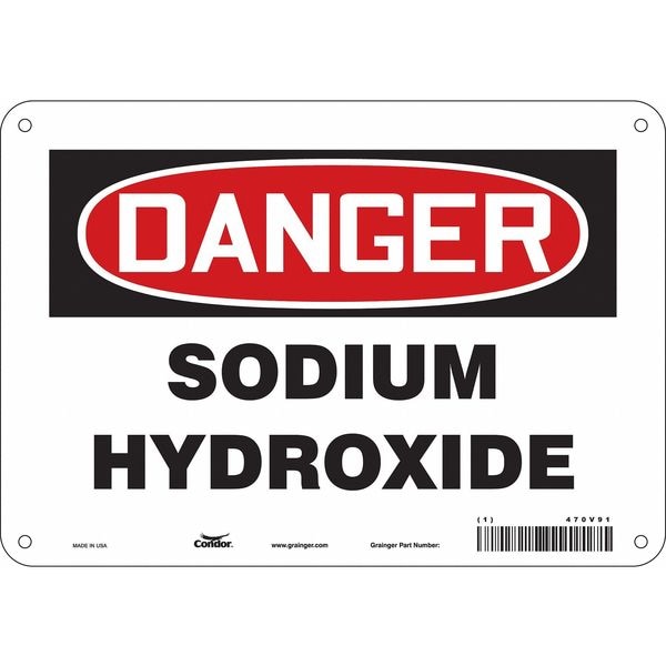 Safety Sign, Vertical Rectangle, Number of Printed Sides 1, English, Sign Format Traditional OSHA, Sign Legend Sodium Hydroxide, Sign Legend Background Color White, Sign Legend Style Text