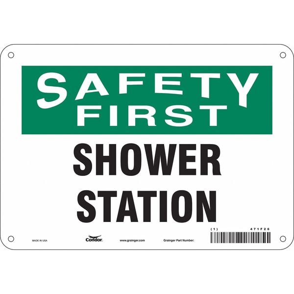 Safety Sign, Vertical Rectangle, Number of Printed Sides 1, English, Sign Format Traditional OSHA, Sign Legend Shower Station, Sign Legend Background Color White, Sign Legend Style Text