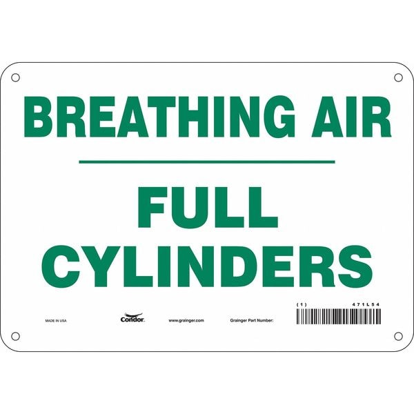 Safety Sign, Vertical Rectangle, Number of Printed Sides 1, English, Sign Format Other Format, Sign Legend Breathing Air Full Cylinders, Sign Legend Background Color White, Sign Legend Style Text