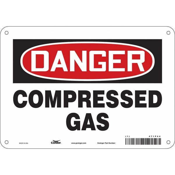Safety Sign, Vertical Rectangle, Number of Printed Sides 1, English, Sign Format Traditional OSHA, Sign Legend Compressed Gas, Sign Legend Background Color White, Sign Legend Style Text