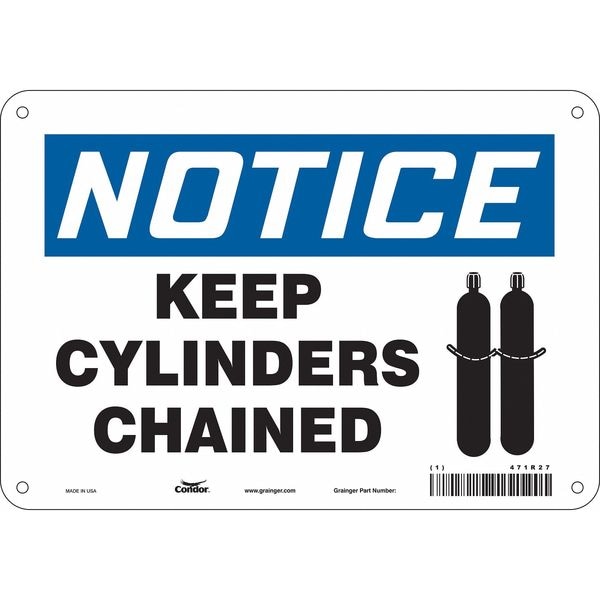 Safety Sign, Vertical Rectangle, Number of Printed Sides 1, English, Sign Format Traditional OSHA, Sign Legend Keep Cylinders Chained, Sign Legend Background Color White, Sign Legend Style Symbol and Text