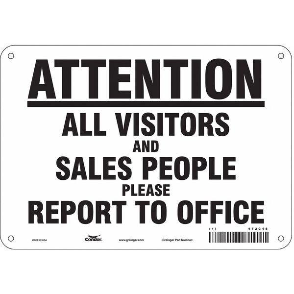 Safety Sign, Vertical Rectangle, Number of Printed Sides 1, English, Sign Format Other Format, Sign Legend Attention All Visitors And Sales People Please Report To Office, Sign Legend Background Color White, Sign Legend Style Text