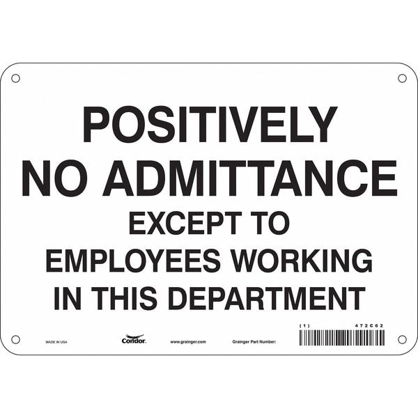 Safety Sign, Vertical Rectangle, Number of Printed Sides 1, English, Sign Format Other Format, Sign Legend Positively No Admittance Except To Employees Working In This Department, Sign Legend Background Color White, Sign Legend Style Text