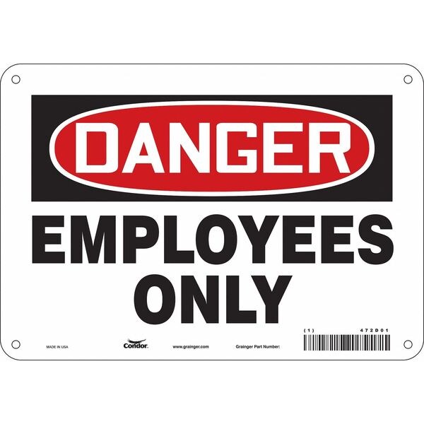 Safety Sign, Vertical Rectangle, Number of Printed Sides 1, English, Sign Format Traditional OSHA, Sign Legend Employees Only, Sign Legend Background Color White, Sign Legend Style Text
