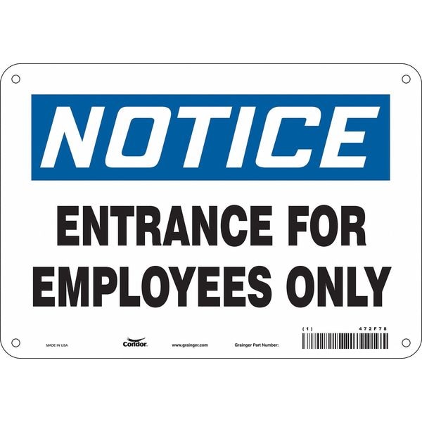 Safety Sign, Vertical Rectangle, Number of Printed Sides 1, English, Sign Format Traditional OSHA, Sign Legend Entrance For Employees Only, Sign Legend Background Color White, Sign Legend Style Text
