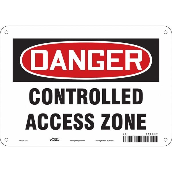 Safety Sign, Vertical Rectangle, Number of Printed Sides 1, English, Sign Format Traditional OSHA, Sign Legend Controlled Access Zone, Sign Legend Background Color White, Sign Legend Style Text