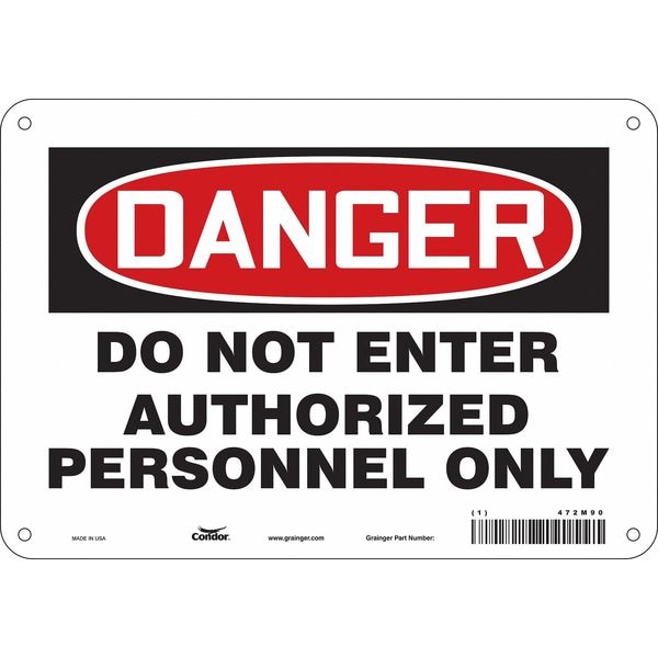 Safety Sign, Vertical Rectangle, Number of Printed Sides 1, English, Sign Format Traditional OSHA, Sign Legend Do Not Enter Authorized Personnel Only, Sign Legend Background Color White, Sign Legend Style Text