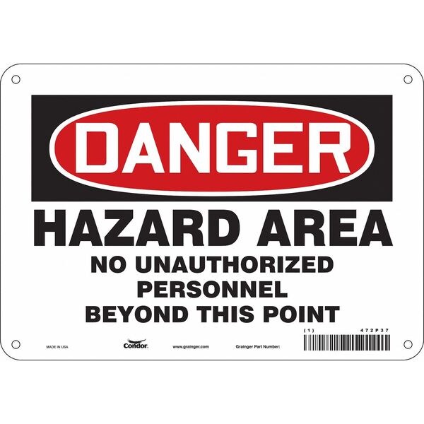 Safety Sign, Vertical Rectangle, Number of Printed Sides 1, English, Sign Format Traditional OSHA, Sign Legend Hazard Area No Unauthorized Personnel Beyond This Point, Sign Legend Background Color White, Sign Legend Style Text