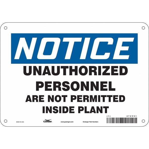 Safety Sign, Vertical Rectangle, Number of Printed Sides 1, English, Sign Format Traditional OSHA, Sign Legend Unauthorized Personnel Are Not Permitted Inside Plant, Sign Legend Background Color White, Sign Legend Style Text