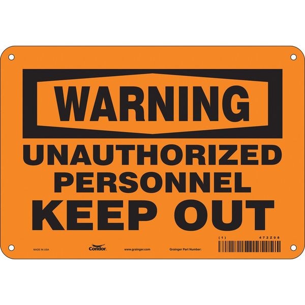 Safety Sign, Vertical Rectangle, Number of Printed Sides 1, English, Sign Format Traditional OSHA, Sign Legend Unauthorized Personnel Keep Out, Sign Legend Background Color Orange, Sign Legend Style Text