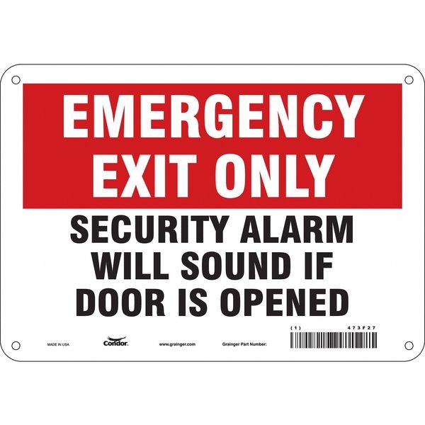 Safety Sign, Vertical Rectangle, Number of Printed Sides 1, English, Sign Legend Security Alarm Will Sound If Door Is Opened, Sign Legend Background Color Red, White, Sign Legend Style Text