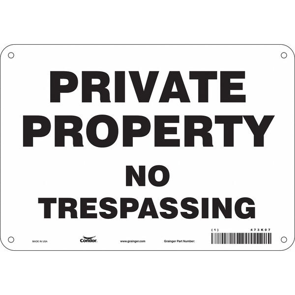 Safety Sign, Vertical Rectangle, Number of Printed Sides 1, English, Sign Format Other Format, Sign Legend Private Property No Trespassing, Sign Legend Background Color White, Sign Legend Style Text